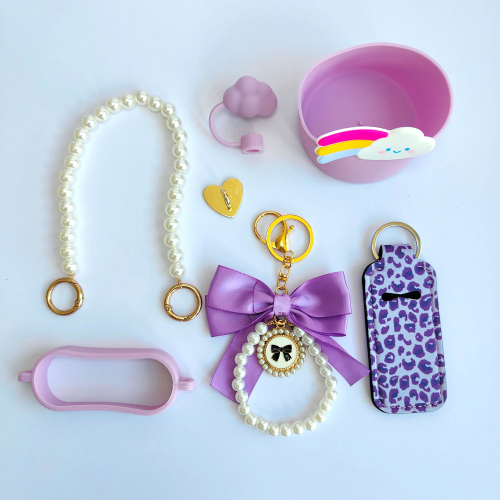 16-piece Pink-purple Splicing Keychain Set